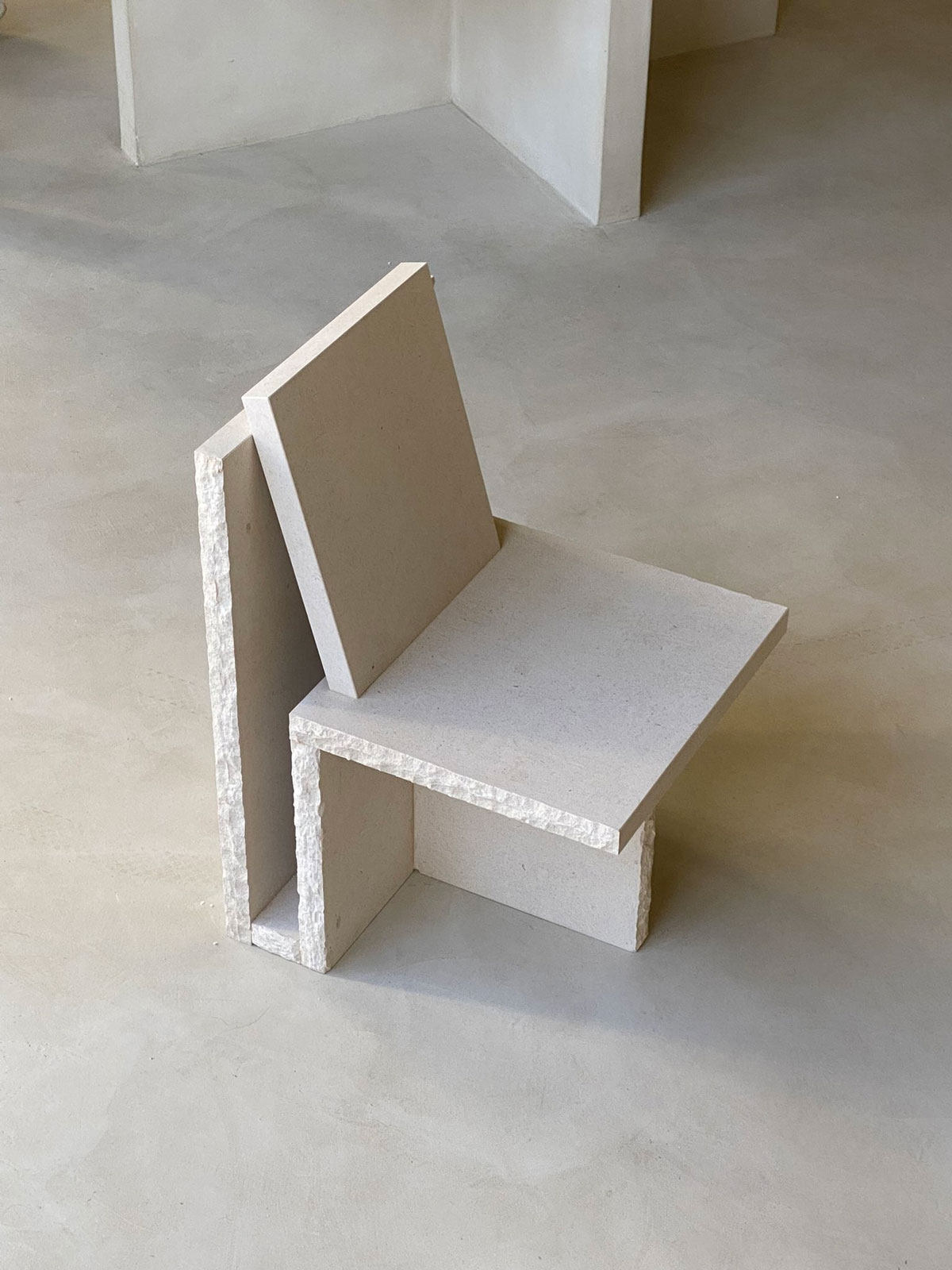 This chair mixes the natural stone look with defined and polished features. Simultaneously, its geometric shape meets a sculptural composition spirit.